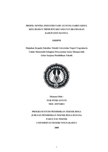 Fitri Astuti, Nur (2015) PROFIL SENTRA INDUSTRI TAHU GUNUNG SAREN KIDUL KELURAHAN TRIMURTI KECAMATAN SRANDAKAN KABUPATEN BANTUL. S1 thesis, Fakultas Teknik.