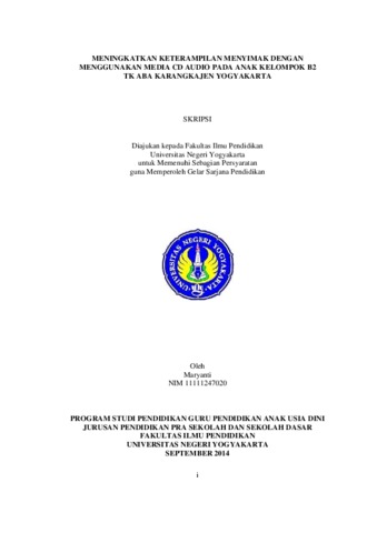 Maryanti (2014) MENINGKATKAN KETERAMPILAN MENYIMAK DENGAN MENGGUNAKAN MEDIA CD AUDIO PADA ANAK KELOMPOK B2 TK ABA KARANGKAJEN YOGYAKARTA. S1 thesis, PG PAUD.