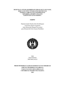 Fajar Prambudi, .Prambudi (2013) HUBUNGAN ANTARA KOORDINASI GERAK MATA DAN KAKI, KEKUATAN OTOT TUNGKAI DAN KETEPATAN PASSING LAMBUNG DALAM PERMAINAN SEPAKBOLA DI SMP N 2 PLAYEN KABUPATEN GUNUNGKIDUL. S1 thesis, Fakultas ilmu Keolahragaan.