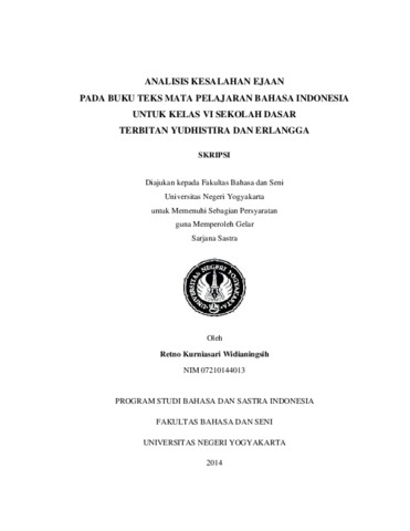 Widianingsih, Retno Kurniasari (2014) ANALISIS KESALAHAN EJAAN PADA BUKU TEKS MATA PELAJARAN BAHASA INDONESIA UNTUK KELAS VI SEKOLAH DASAR PENERBIT YUDHISTIRA DAN ERLANGGA. S1 thesis, Universitas Negeri Yogyakarta.