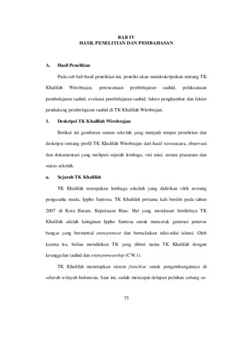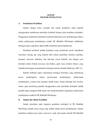Vera, Sholeha (2015) PELAKSANAAN PEMBELAJARAN TAUHID DI TK KHALIFAH WIROBRAJAN. S1 thesis, PG PAUD.