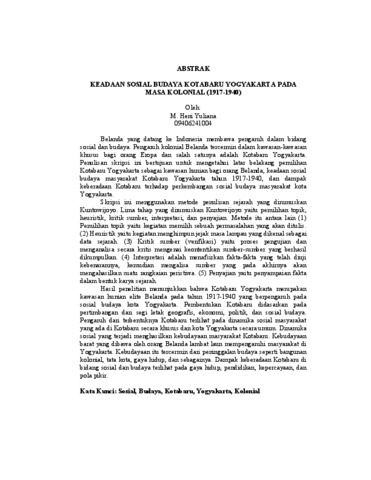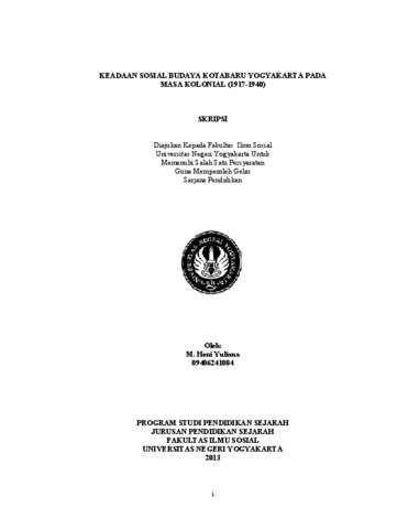 Yuliana, M. Heni (2013) KEADAAN SOSIAL BUDAYA KOTABARU YOGYAKARTA PADA MASA KOLONIAL (1917-1940). S1 thesis, Fakultas Ilmu Sosial.