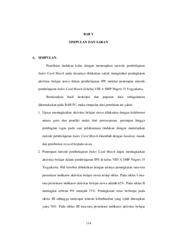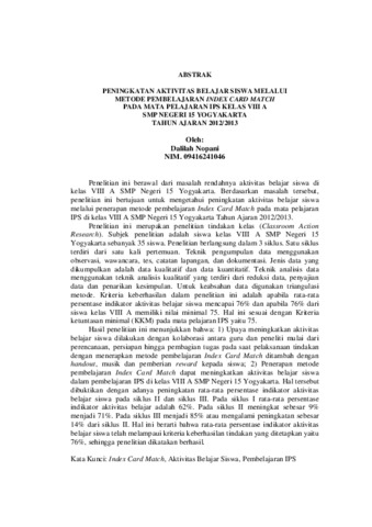 Dalilah, Nopani (2013) PENINGKATAN AKTIVITAS BELAJAR SISWA MELALUI METODE PEMBELAJARAN INDEX CARD MATCH PADA MATA PELAJARAN IPS KELAS VIII A SMP NEGERI 15 YOGYAKARTA TAHUN AJARAN 2012/2013. S1 thesis, Fakultas Ilmu Sosial.
