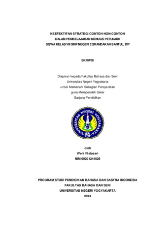 Penelitian ini bertujuan untuk membuktikan: (1) perbedaan keterampilan menulis petunjuk antara siswa yang mengikuti pembelajaran menggunakan strategi Contoh Non-Contoh dengan siswa yang mengikuti pembelajaran tanpa menggunakan strategi Contoh Non-Contoh, dan (2) keefektifan strategi Contoh Non-Contoh dalam pembelajaran menulis petunjuk siswa kelas VIII SMP Negeri 2 Srandakan Bantul, DIY. Strategi Contoh Non-Contoh digunakan dalam penelitian ini dengan dilandaskan pada asumsi bahwa strategi Contoh Non-Contoh memiliki beberapa kelebihan sehingga perlu diujicoba keefektifannya dalam pembelajaran menulis petunjuk. Penelitian ini merupakan penelitian kuantitatif dengan metode eksperimen. Desain penelitian ini adalah pretest-posttest control group design. Desain penelitian menggunakan penelitian eksperimen dengan rancangan quasi exsperiment design. Variabel dalam penelitian ini ada dua, yaitu variabel bebas yang berupa strategi Contoh Non-Contoh dan variabel terikat yang berupa keterampilan menulis petunjuk. Populasi penelitian ini adalah seluruh siswa kelas VIII SMP Negeri 2 Srandakan berjumlah 148. Sampel dalam penelitian ini ditentukan dengan teknik simple random sampling. Teknik pengumpulan data yang digunakan dalam penelitian ini adalah metode tes, yang berupa tes menulis petunjuk. Hasil uji normalitas sebaran data dalam penelitian ini menunjukkan data penelitian berdistribusi normal. Hasil uji homogenitas menunjukkan bahwa varian data penelitian ini homogen. Selanjutnya, data dianalisis dengan menggunakan uji-t. Hasil penelitian menunjukkan bahwa terdapat perbedaan yang signifikan antara keterampilan menulis petunjuk antara siswa yang mengikuti pembelajaran menggunakan strategi Contoh Non-Contoh dengan siswa yang mengikuti pembelajaran tanpa menggunakan strategi Contoh Non-Contoh. Hal tersebut ditunjukkan dengan hasil penghitungan uji-t skor pascates kelompok kontrol dan kelompok eksperimen menunjukkan thitung (th) lebih besar dari skor ttabel (th=2,362>tt=2,010) pada taraf signifikansi 5% (0,05) dan df 49. Strategi Contoh Non-Contoh efektif digunakan dalam pembelajaran menulis petunjuk. Hal tersebut ditunjukkan oleh hasil uji-t skor prates dan pascates kelompok eksperimen yang menunjukkan bahwa skor thitung (th) adalah sebesar 2,362 dengan df 25. Skor ttabel pada taraf signifikansi 5% (0,05) dan df 25 adalah 2,060. Hal ini menunjukkan bahwa skor thitung lebih besar daripada skor ttabel (th=4,681>tt=2,060).