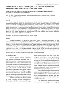 Ali Akbar, Yulianto IMPROVING K3 SUBJECT LEARNING ACHIEVEMENT AT SMK COKROAMINOTO 2 BANJARNEGARA USING TS-TS METHOD. E-Jurnal Pendidikan Teknik Mesin, 2 (4).