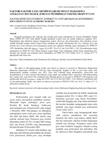Armando, Susilo FACTORS AFFECTING STUDENTS’ INTEREST TO JOINT MECHANICAL ENGINEERING EDUCATION FT UNY IN ACADEMIC YEAR 2013. E-Jurnal Pendidikan Teknik Mesin, 2 (4).