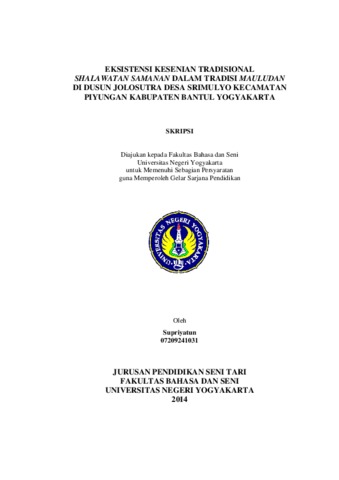 Penelitian ini bertujuan untuk mendeskripsikan eksistensi kesenian tradisional Shalawatan Samanan dalam tradisi Mauludan di Dusun Jolosutra Desa Srimulyo Kecamatan Piyungan Kabupaten Bantul Yogyakarta. Objek penelitian ini adalah Kesenian Tradisional Shalawatan Samanan di Dusun Jolosutra Desa Srimulyo Kecamatan Piyungan Kabupaten Bantul Yogyakarta. Subjek penelitian ini adalah ketua dan seniman kesenian tradisional Shalawatan Samanan serta perangkat Dusun Jolosutra. Tehnik pengumpulan data dilakukan dengan teknik observasi langsung, wawancara mendalam, dan studi dokumentasi. Analisis data dilakukan secara deskriptif-kualitatif. Teknik triangulasi yang digunakan adalah triangulasi sumber yaitu melakukan pengecekan data dari sumber-sumber yang berbeda. Hasil penelitian yang diperoleh adalah : Kesenian tradisional Shalawatan Samanan di Dusun Jolosutra berdiri pada masa pemerintahan Sri Sultan Hamengku Buwono ke V yaitu antara tahun 1823-1855. Bahasa yang digunakan adalah bahasa Arab. Kesenian ini pada mulanya berfungsi sebagai salah satu rangkaian perayaan Maulid Nabi, sekarang kesenian Shalawatan Samanan ini berkembang fungsinya sebagai perayaan acara hajatan masyarakat setempat, antara lain khitanan, ruwatan, selapan bayi ataupun acara syukuran. Hal ini dilakukan sebagai salah satu upaya untuk menjaga eksistensi kesenian Shalawatan Samanan tersebut agar tetap hidup di kalangan masyarakat, terutama masyarakat di Dusun Jolosutra Desa Srimulyo Kecamatan Piyungan Kabupaten Bantul Yogyakarta. Langkah lainnya sebagai upaya untuk menjaga eksistensi kesenian ini adalah dengan memunculkan generasi baru, dengan memberikan materi-materi kesenian tradisional Shalawatan Samanan kepada masyarakat yang lebih muda sehingga kesenian ini masih tetap tumbuh dan berkembang hingga sekarang.