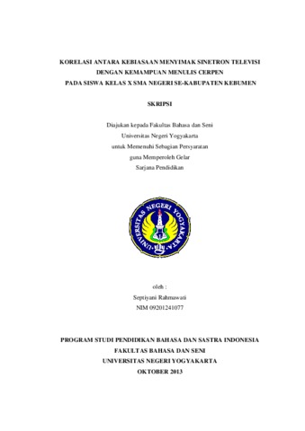 Rahmawati, Septiyani (2013) KORELASI ANTARA KEBIASAAN MENYIMAK SINETRON TELEVISI DENGAN KEMAMPUAN MENULIS CERPEN PADA SISWA KELAS X SMA NEGERI SEKABUPATEN KEBUMEN. S1 thesis, Universitas Negeri Yogyakarta.