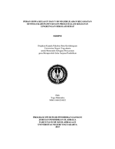 Yoga Mahendra (2015) PERAN SISWA KELAS IV DAN V SD NEGERI JLABAN KECAMATAN SENTOLO KABUPATEN KULON PROGO DALAM KEGIATAN LINGKUNGAN SEKOLAH SEHAT. S1 thesis, Fakultas Ilmu Keolahragaan.