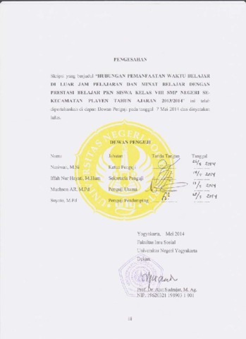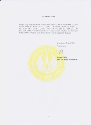 Seta, Eka Purwanto (2014) HUBUNGAN PEMANFAATAN WAKTU BELAJAR DI LUAR JAM PELAJARAN DAN MINAT BELAJAR DENGAN PRESTASI BELAJAR PKN SISWA KELAS VIII SMP NEGERI SE KECAMATAN PLAYEN TAHUN AJARAN 2013/2014. S1 thesis, Fakultas Ilmu Sosial.