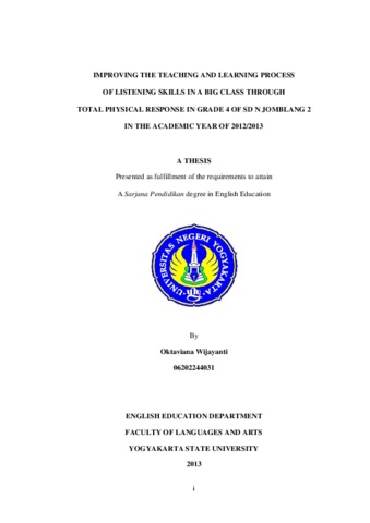 IMPROVING THE TEACHING AND LEARNING PROCESS OF LISTENING SKILLS IN A BIG CLASS THROUGH TOTAL PHYSICAL RESPONSE IN GRADE 4 OF SD N JOMBLANG 2 IN THE ACADEMIC YEAR OF 2012/2013