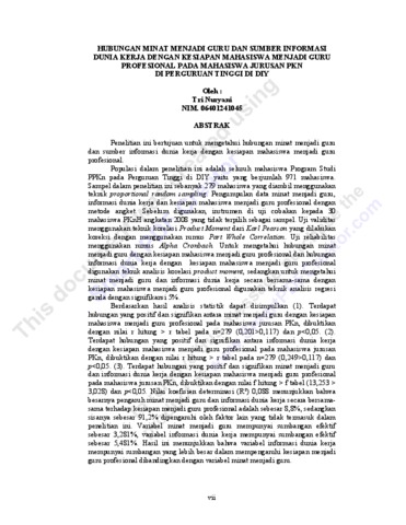 Tri Nur, tnr HUBUNGAN MINAT MENJADI GURU DAN SUMBER INFORMASI DUNIA KERJA DENGAN KESIAPAN MAHASISWA MENJADI GURU PROFESIONAL PADA MAHASISWA JURUSAN PKN DI PERGURUAN TINGGI DI DIY. S1 thesis, UNY.