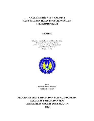Rinanda, Zahrulia Arina (2012) ANALISIS STRUKTUR KALIMAT PADA WACANA IKLAN BROSUR PROVIDER TELEKOMUNIKASI. S1 thesis, Universitas Negeri Yogyakarta.