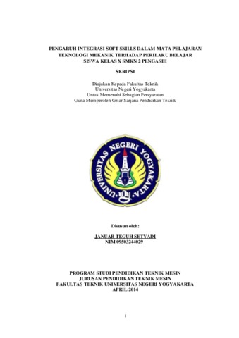 PENGARUH INTEGRASI SOFT SKILLS DALAM MATA PELAJARAN TEKNOLOGI MEKANIK TERHADAP PERILAKU BELAJAR SISWA KELAS X SMKN 2 PENGASIH Oleh: Januar Teguh Setyadi 09503244029 ABSTRAK Penelitian ini bertujuan untuk: (1) Mengetahui perilaku belajar siswa kelas X di SMKN 2 Pengasih sebelum adanya integrasi soft skills dalam mata pelajaran Teknologi Mekanik; (2) Mengetahui perilaku belajar siswa kelas X di SMKN 2 Pengasih setelah adanya integrasi soft skills dalam mata pelajaran Teknologi Mekanik; (3) Mengetahui pengaruh integrasi soft skills dalam mata pelajaran Teknologi Mekanik terhadap perilaku belajar siswa kelas X di SMKN 2 Pengasih; (4) Mengetahui besar sumbangan integrasi soft skills dalam mata pelajaran Teknologi Mekanik terhadap perilaku belajar siswa kelas X di SMKN 2 Pengasih. Penelitian ini merupakan penelitian quasi eksperimen dengan variabel bebas adalah integrasi soft skills dan perilaku belajar sebagai variabel terikat. Sampel diambil dengan teknik purposive sampling yaitu kelas 1TP1 sebagai kelas eksperimen dan kelas 1TP2 sebagai kelas kontrol. Data diambil melalui observasi dan kuesioner. Analisis data melalui statistik frekuensi dan analisis korelasi product moment. Hasil penelitian menunjukkan bahwa: (1) Perilaku belajar siswa kelas X SMKN 2 Pengasih sebelum adanya integrasi soft skills dalam mata pelajaran Teknologi Mekanik adalah kurang baik dengan nilai 61,09 untuk kelas eksperimen dan untuk kelas kontrol dengan nilai 63,44 dalam kategori biasa; (2) Perilaku belajar siswa kelas X SMKN 2 Pengasih setelah adanya integrasi soft skills dalam mata pelajaran Teknologi Mekanik meningkat yaitu 76,25 untuk kelas eksperimen dalam kategori biasa dan nilai 73,91 untuk kelas kontrol dalam kategori biasa; (3) Ada Pengaruh Integrasi Soft Skills dalam mata pelajaran Teknologi Mekanik terhadap perilaku belajar siswa kelas X SMKN 2 Pengasih berdasarkan hasil uji korelasi product moment diperoleh nilai koefisien korelasi 0,445 dengan kategori sedang; (4) Besar sumbangan integrasi soft skills dalam mata pelajaran Teknologi Mekanik terhadap perilaku belajar siswa cukup signifikan yaitu 19,8%. Kata Kunci : Integrasi soft skills, perilaku belajar siswa