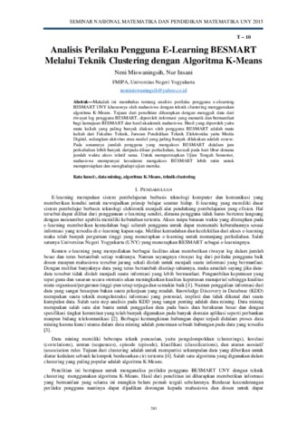 Miswaningsih, Neni and Insani, Nur (2015) Analisis Perilaku Pengguna E-Learning BESMART Melalui Teknik Clustering dengan Algoritma K-Means. In: Seminar Nasional Matematika dan Pendidikan Matematika UNY 2015, 2015, Yogyakarta, Indonesia.