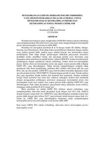 Diah Ayu Pebrianti, Kumalasari (2016) PENGEMBANGAN LKPD IPA BERBASIS INKUIRI TERBIMBING YANG MENGINTEGRASIKAN NILAI-NILAI MORAL UNTUK MENGEMBANGKAN KETERAMPILAN PROSES DAN KETERAMPILAN SOSIAL PESERTA DIDIK SMP. S1 thesis, FMIPA.