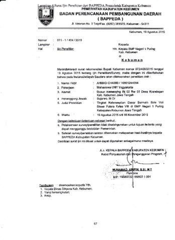 Lampiran 4. Surat Ijin Penelitian dari BAPPEDA Kebumen.pdf Download (629kB) | Preview |