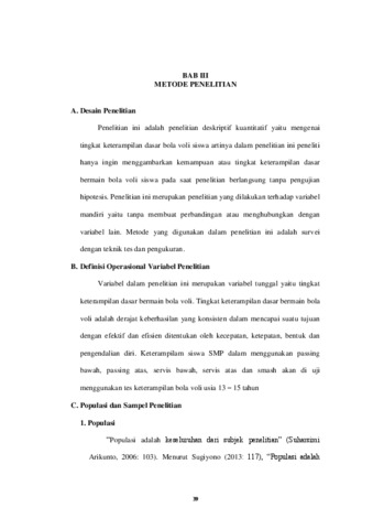 Permasalahan dalam penelitian ini adalah terjadi penurunan prestasi bola voli siswa putra SMP Negeri 1 Puring serta belum diketahuinya tingkat keterampilan dasar bermain bola voli siswa putra SMP Negeri 1 Puring. Penelitian ini dilakukan dengan tujuan untuk mengetahui tingkat keterampilan dasar bermain bola voli siswa putra kelas VIII di SMP Negeri 1 Puring, Kab. Kebumen, Jawa Tengah. Penelitian ini merupakan penelitian deskriptif kuantitatif. Metode penelitian ini menggunakan metode survei dengan teknik tes dan pengukuran. Subjek dalam penelitian ini diambil dengan teknik sampling secara acak yaitu siswa putra kelas VIII SMP Negeri 1 Puring, Kab.Kebumen yang berjumlah 50 anak. Instrumen yang digunakan dalam penelitian ini adalah tes keterampilan bola voli usia 13-15 tahun dengan validitas passing bawah 0,733, validitas passing atas 0,692, validitas servis bawah 0,555, validitas servis atas 0,676, validitas smash 0,346, validitas rangkaian 0.853 dan reabilitas passing bawah 0,758, reabilitas passing atas 0,973, reabilitas servis bawah 0,682, reabilitas servis atas 0,812, reabilitas smash 0,573. Teknik analisis data yang digunakan adalah analisis statistik deskriptif kuantitatif dengan persentase. Berdasarkan hasil data penelitian tingkat keterampilan dasar bermain bola voli siswa putra kelas VIII di SMP Negeri 1 Puring, Kab.Kebumen, Jawa Tengah dari 50 siswa yang masuk ke dalam kategori “baik sekali” sebesar 6% (3 anak), kategori “baik” sebesar 28% (14 anak), kategori “sedang” sebesar 42% (21 anak), kategori “kurang” sebesar 16% (8 anak) dan kategori “kurang sekali” sebesar 8% (4 anak). Berdasarkan data di atas dapat disimpulkan bahwa sebagian besar tingkat keterampilan dasar bermain bola voli siswa putra kelas VIII SMP Negeri 1 Puring, Kab.Kebumen, Jawa Tengah kategori sedang.