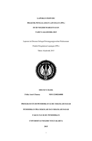 Frida Amri Chusna, Frida Amri Chusna (2015) LAPORAN INDIVIDU PRAKTIK PENGALAMAN LAPANGAN (PPL) DI SD NEGERI MARGOYASAN TAHUN AKADEMIK 2015. Project Report. LPPMP, Universitas Negeri Yogyakarta.