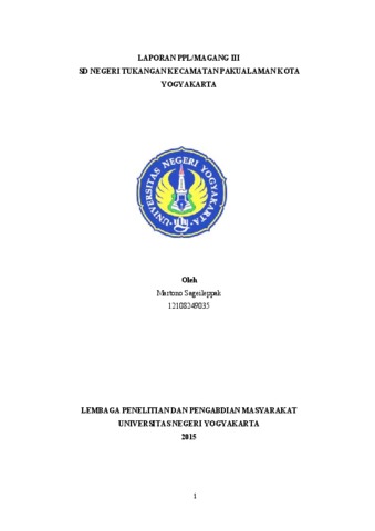 Martono Sageileppak, Martono Sageileppak (2015) LAPORAN PPL/MAGANG III SD NEGERI TUKANGAN KECAMATAN PAKUALAMAN KOTA YOGYAKARTA. Project Report. LPPMP, Universitas Negeri Yogyakarta.