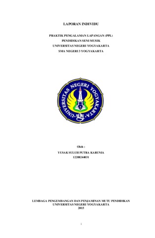 Yusak Suluh Putra Karunia, Yusak Suluh Putra Karunia (2015) LAPORAN INDIVIDU PRAKTIK PENGALAMAN LAPANGAN (PPL) PENDIDIKAN SENI MUSIK UNIVERSITAS NEGERI YOGYAKARTA SMA NEGERI 3 YOGYAKARTA. Project Report. LPPMP, Universitas Negeri Yogyakarta.
