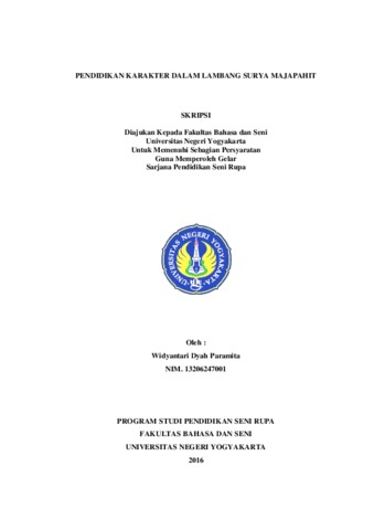 ABSTRAK Penelitian ini bertujuan untuk mengetahui tentang nilai-nilai karakter yang terkandung dalam lambang Surya Majapahit. Nilai-nilai karakter ini nantinya akan menjadi acuan bagi pendidikan karakter. Penelitian ini merupakan penelitian deskript if kualitatif. Objek penelitian ini adalah lambang Surya Majapahit pada masa pemerintahan Tribhuwanattunggadewi (1328-1350 M) hingga Wikramawardhana (1390-1406 M, setelah perang Paregreg) dan merupakan lambang k-2 yang dipakai oleh kerajaan Majapahit setelah lambang yang dibuat pada masa pemerintahan Raden Wijaya (1293 M). Penelitian difokuskan terhadap nilai-nilai karakter yang terkandung dalam lambang Surya Majapahit, yang dibagi menjadi 3 bagian yaitu (1) Dewata Nawasanga, (2) dewa Lokapala, dan (3) unsur pembentuk lambang. Lambang Surya Majapahit dianalisis menurut bentuknya, dan menurut pada teori yang telah didapatkan serta persepsi dari peneliti. Data penelitian diperoleh dari dokumenter dan wawancara. Dokumenter yang dimaksud yaitu mengenai sumber- sumber tertulis yang didapat dari buku, jurnal, dan internet. Sedangkan wawancara yang digunakan yaitu wawancara tidak terstruktur mengenai Dewata Nawasanga dan Lokapala. Data dianalisis dengan teknik analisis data kulaitatif dengan langkah-langkah penelitian yaitu (1) pengumpulan data, (2) reduksi data, (3) penyajian data, dan (4) penarikan kesimpulan/verifikasi data. Hasil penelitian menunjukkan bahwa di dalam lambang Surya Majapahit terdapat nilai-nilai karakter untuk pendidikan karakter. Nilai-nilai karakter tersebut antara lain mengenai karakter tiap dewa pada Dewata Nawasanga dan karakter dewa Lokapala yang merupakan karakter dari pemimpin yang baik, selain itu nilai karakter mengenai unsur bentuk yang membentuk lambang tersebut.