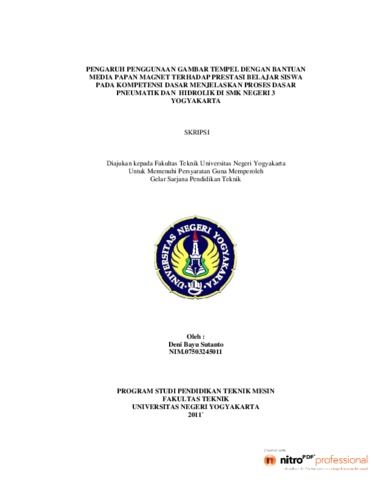 Sutanto, Deni Bayu (2016) PENGARUH PENGGUNAAN GAMBAR TEMPEL DENGAN BANTUAN MEDIA PAPAN MAGNET TERHADAP PRESTASI BELAJAR SISWA PADA KOMPETENSI DASAR MENJELASKAN PROSES DASAR PNEUMATIK DAN HIDROLIK DI SMK NEGERI 3 YOGYAKARTA. S1 thesis, UNY.