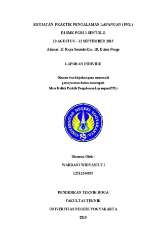 WARDANI WIDYASTUTI, WARDANI WIDYASTUTI (2015) LAPORAN KEGIATAN PRAKTIK PENGALAMAN LAPANGAN (PPL) DI SMK PGRI 1 SENTOLO. Project Report. LPPMP, Universitas Negeri Yogyakarta.