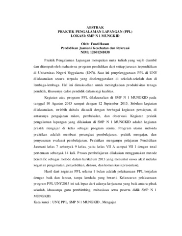 Fuad Hasan, Fuad Hasan (2015) LAPORAN PRAKTEK PENGALAMAN LAPANGAN SMP NEGERI 1 MUNGKID. Project Report. LPPMP, Universitas Negeri Yogyakarta.