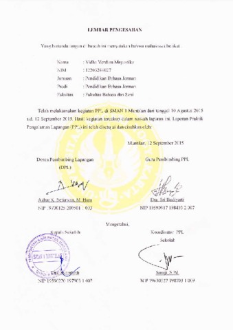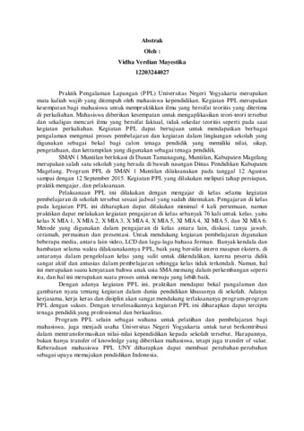 Vidha Verdian Mayestika, Vidha Verdian Mayestika (2015) LAPORAN INDIVIDU PRAKTIK PENGALAMAN LAPANGAN ( PPL ) SMAN 1 MUNTILAN. Project Report. LPPMP, Universitas Negeri Yogyakarta.