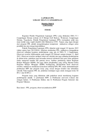 Mariska Diah K, Mariska Diah K (2015) LAPORAN INDIVIDU PRAKTIK PENGALAMAN LAPANGAN UNIVERSITAS NEGERI YOGYAKARTA. Project Report. LPPMP, Universitas Negeri Yogyakarta.