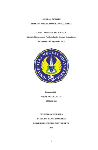 Arum Nazurahaini, Arum Nazurahaini (2015) LAPORAN INDIVIDU PRAKTIK PENGALAMAN LAPANGAN (PPL). Project Report. LPPMP, Universitas Negeri Yogyakarta.