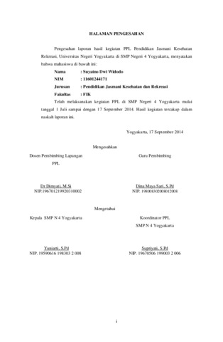 SUYATNO DWI WIDODO, SUYATNO DWI WIDODO (2014) LAPORAN INDIVIDU PRAKTIK PENGALAMAN LAPANGAN (PPL) LOKASI SMP NEGERI 4 YOGYAKARTA. Project Report. LPPMP, Universitas Negeri Yogyakarta.