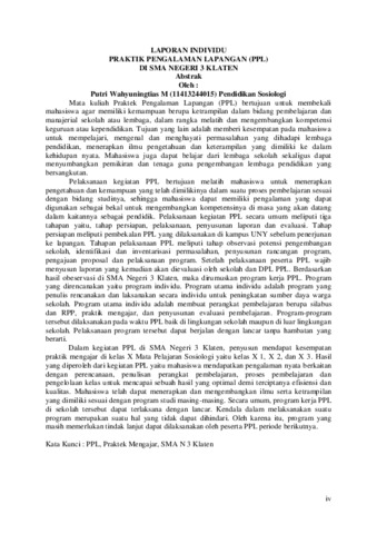 Putri Wahyuningtias M, Putri Wahyuningtias M (2014) LAPORAN INDIVIDU PRAKTIK PENGALAMAN LAPANGAN (PPL) DI SMA NEGERI 3 KLATEN. Project Report. LPPMP, Universitas Negeri Yogyakarta.