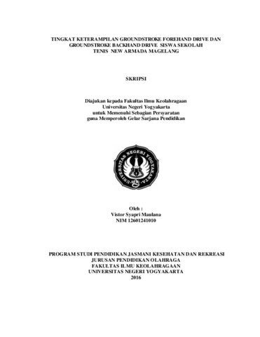 Vistor Syapri Maulana (2016) TINGKAT KETERAMPILAN GROUNDSTROKE FOREHAND DRIVE DAN GROUNDSTROKE BACKHAND DRIVE SISWA SEKOLAH TENIS NEW ARMADA MAGELANG. S1 thesis, Fakultas Ilmu Keolahragaan.