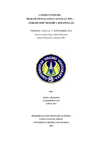 Nindya Prabowo, Nindya Prabowo (2014) LAPORAN INDIVIDU PRAKTIK PENGALAMAN LAPANGAN (PPL) LOKASI SMP NEGERI 1 JOGONALAN. Project Report. LPPMP, Universitas Negeri Yogyakarta.
