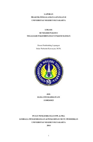 Elisa DwiRahmawati, Elisa DwiRahmawati (2014) LAPORAN PRAKTIK PENGALAMAN LAPANGAN II UNIVERSITAS NEGERI YOGYAKARTA LOKASI: SD NEGERI PAKEM 1 TEGALSARI PAKEMBINANGUN PAKEM SLEMAN. Project Report. LPPMP, Universitas Negeri Yogyakarta.