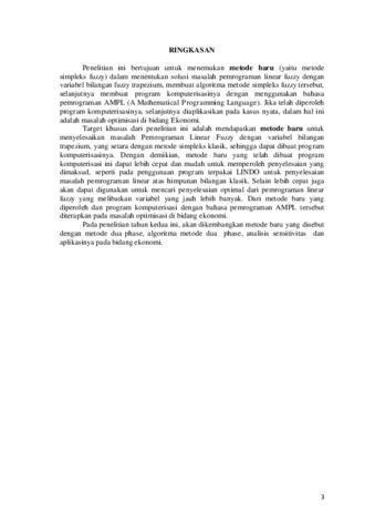 Dhoriva Urwatul, Wutsqa and Karyati, Karyati and Nur, Insani (2016) MENGKONSTRUKSI PROGRAM TERPAKAI METODE SIMPLEKS FUZZY MENGGUNAKAN A MATHEMATICAL PROGRAMMING LANGUAGE UNTUK MENYELESAIKAN MASALAH PEMROGRAMAN LINEAR FUZZY DAN APLIKASINYA PADA BIDANG EKONOMI. Artikel Penelitian Hibah Bersaing.