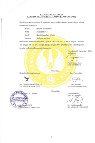 | Uncontrolled Keywords: | Praktik pengalaman lapangan (PPL), Seni musik, SMA 1 Sleman |