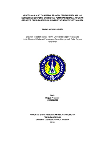 Bagus, Prasetyo (2016) KESESUAIAN ALAT DAN MEDIA PRAKTIK DENGAN MATA KULIAH KEMUDI REM SUSPENSI DAN SISTEM PEMINDAH TENAGA JURUSAN OTOMOTIF FAKULTAS TEKNIK UNIVERSITAS NEGERI YOGYAKARTA. S1 thesis, Fakultas Teknik.