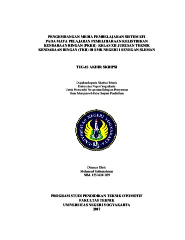 SKRIPSI PENGEMBANGAN MEDIA PEMBELAJARAN SISTEM EFI PADA MATA PELAJARAN PKKR DI SMK NEGERI 1 SEYEGAN SLEMAN.pdf Download (19MB) | Preview |