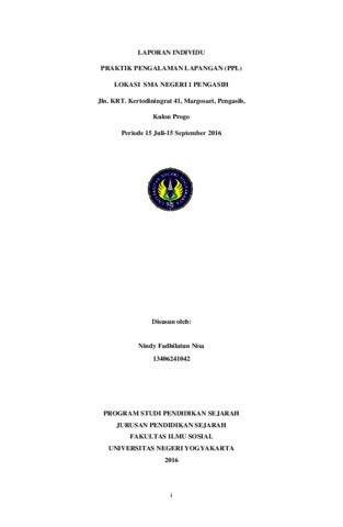 Nindy Fadhilatun Nisa, Nindy Fadhilatun Nisa (2016) LAPORAN INDIVIDU PRAKTIK PENGALAMAN LAPANGAN (PPL) LOKASI SMA NEGERI 1 PENGASIH. Project Report. LPPMP, Universitas Negeri Yogyakarta.
