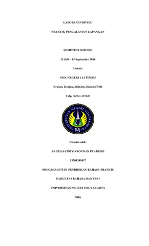Bagus Satriyo Bondan Prakoso, Bagus Satriyo Bondan Prakoso (2016) LAPORAN INDIVIDU PRAKTIK PENGALAMAN LAPANGAN. Project Report. LPPMP, Universitas Negeri Yogyakarta.