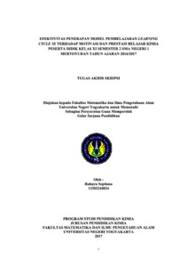 Septiana, Rahayu (2017) EFEKTIVITAS PENERAPAN MODEL PEMBELAJARAN LEARNING CYCLE 5E TERHADAP MOTIVASI DAN PRESTASI BELAJAR KIMIA PESERTA DIDIK KELAS XI SEMESTER 2 SMA NEGERI 1 MERTOYUDAN TAHUN AJARAN 2016 /2017. S1 thesis, Fakultas Matematika dan Ilmu Pengetahuan Alam UNY.
