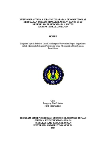 Dwi Sulaksa, Langgeng (2017) HUBUNGAN ANTARA ASUPAN GIZI SARAPAN DENGAN TINGKAT KEBUGARAN JASMANI SISWA KELAS IV, V, DAN VI DI SD NEGERI 2 WATES KECAMATAN WATES KABUPATEN KULONPROGO. S1 thesis, Fakultas Ilmu Keolahragaan.