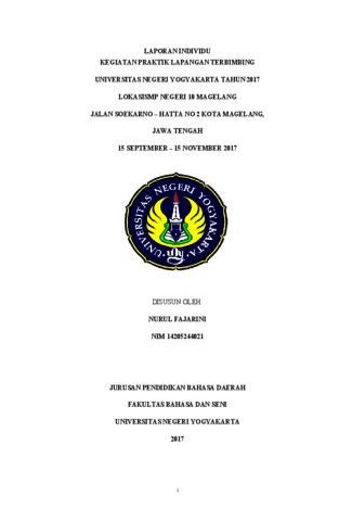 Nurul Fajarini, Nurul Fajarini (2017) LAPORAN PRAKTIK LAPANGAN TERBIMBING. Project Report. LPPMP, Universitas Negeri Yogyakarta.