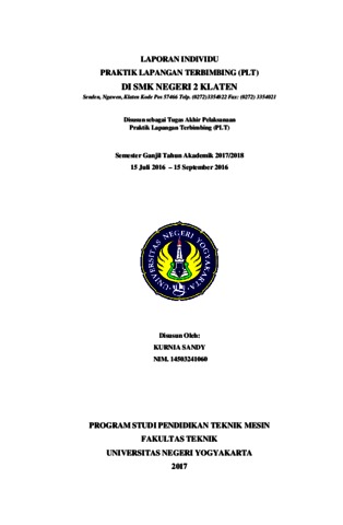 KURNIA SANDY, KURNIA SANDY (2017) LAPORAN INDIVIDU PRAKTIK LAPANGAN TERBIMBING (PLT) DI SMK NEGERI 2 KLATEN. Project Report. LPPMP, Universitas Negeri Yogyakarta.