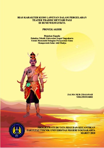 Nur Chasanah, Zalma (2018) RIAS KARAKTER KUDO LAWEYANDALAM PERGELARAN TEATER TRADISI MENTARI PAGI DI BUMI WILWATIKTA. D3 thesis, Fakultas Teknik.