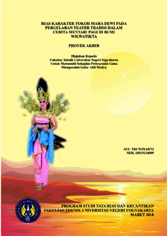 Tri Winarni, Ayu (2018) RIAS KARAKTER MAHA DEWI PADA PERGELARAN TEATER TRADISI MENTARI PAGI DI BUMI WILWATIKTA. D3 thesis, Fakultas Teknik.