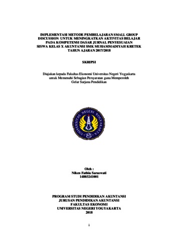 Penelitian ini bertujuan untuk mengetahui peningkatan Aktivitas Belajar Pada Kompetensi Dasar Jurnal Penyesuaian Siswa Kelas X Akuntansi SMK Muhammadiyah Kretek Tahun Ajaran 2017/2018 melalui penerapan Metode Pembelajaran Small Group Discussion. Penelitian ini merupakan Penelitian Tindakan Kelas (PTK) yang dilaksanakan dalam dua siklus. Setiap siklus terdiri dari empat tahap, yaitu perencanaan, pelaksanaan, pengamatan, dan refleksi. Subjek penelitian ini adalah Siswa Kelas X Akuntansi SMK Muhammadiyah Kretek Tahun Ajaran 2017/2018 yang terdiri dari 25 siswa. Teknik pengumpulan data yang digunakan adalah observasi dan dokumentasi. Instrumen yang digunakan dalam penelitian ini adalah lembar observasi dan catatan lapangan. Teknik analisis data dalam penelitian ini adalah teknik analisis deskriptif kuantitatif. Hasil penelitian ini menunjukkan bahwa Aktivitas Belajar Pada Kompetensi Dasar Jurnal Penyesuaian Siswa Kelas X Akuntansi SMK Muhammadiyah Kretek Tahun Ajaran 2017/2018 meningkat setelah diterapkan Metode Pembelajaran Small Group Discussion dari 58,80 % pada siklus I menjadi 85,22 % pada siklus II.